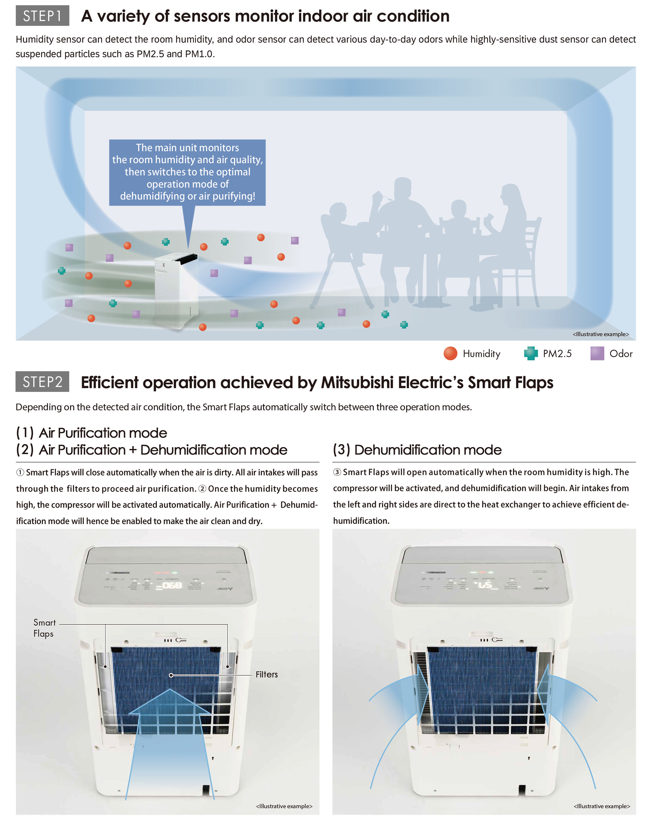 BIKUKAN Air Purifying Dehumidifier Dehumidifying capacity: - MEELS Standard: 15.5L/Day Water tank capacity: 5.5L Dehumidifying, air-purifying and deodorizing all in one Smart Auto mode with unique Smart Flaps Adjust indoor humidity and cleanliness automatically