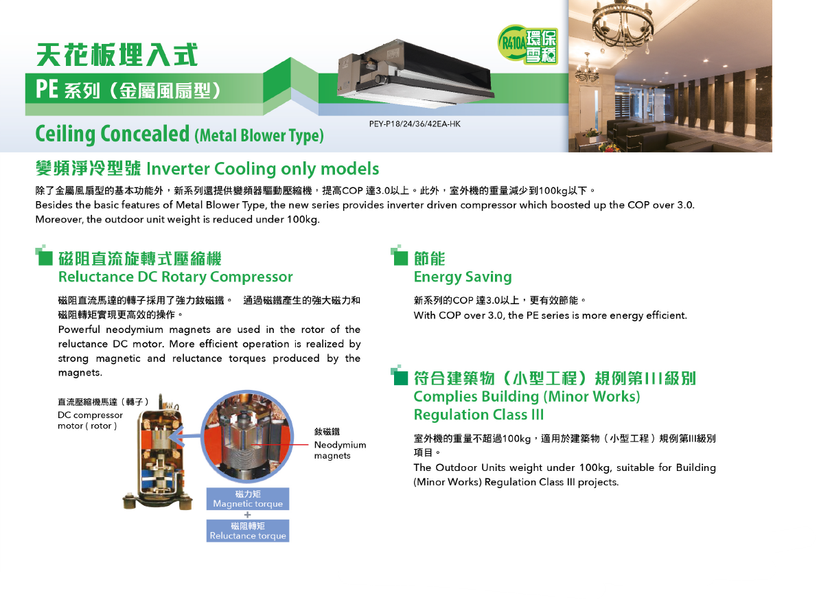 | Model | Indoor Unit | PEY-P18EA-HK | PEY-P24EA-HK | PEY-P36EA-HK | PEY-P42EA-HK | |